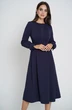 Лаконичный фасон и женственность – две важные особенности. Именно этими словами можно охарактеризовать это платье, которое будет актуально на любом мероприятии. Платье женское полуприлегающего силуэта из костюмно-плательной ткани, может быть как нарядным, так и для повседневной носки. Платье отрезное по линии талии, с притачным поясом. Верхняя часть переда (лиф) с защипами, идущими от горловины до шва притачивания пояса. Нижняя часть переда (юбка) с 2-я парами складок. Спинка со средним швом, в котором обработана застежка на потайную тесьму-молнию. Верхняя часть спинки с талиевыми вытачками, идущими от шва притачивания пояса. Нижняя часть спинки с 2-я парами складок. Рукава втачные, одношовные, длинные. По окату рукава имеется сборка. Низ рукава обработан притачной манжетой, застегивающейся на петлю и пуговицу, рукав по шву притачивания к манжете со сборкой. Манжета с закругленным углом. По нижней части манжеты - рюша. Горловина овальной формы, обработана обтачкой.
