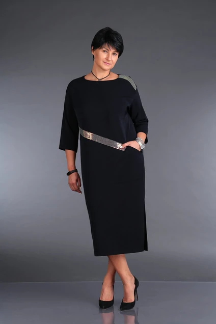 Платья 357-1 Zigzag Style из коллекции бренда Zigzag Style сочетает в себе современный крой и элегантность. Изготовлено из костюмной ткани с полиэстером, вискозой и лайкрой, обеспечивающими комфорт и долговечность. Прямой силуэт и зауженный к низу фасон подчеркивают фигуру, а настрочная тесьма из пайеток добавляет яркий акцент. Практичные детали — спущенное плечо и накладной карман на левой части переда. Длина миди со стильным боковым разрезом и рукавами 3/4 делает платье идеальным выбором для осеннего и весеннего сезонов. Круглая горловина и классический черный цвет позволяют использовать платье как для рабочих встреч, так и для вечерних мероприятий.