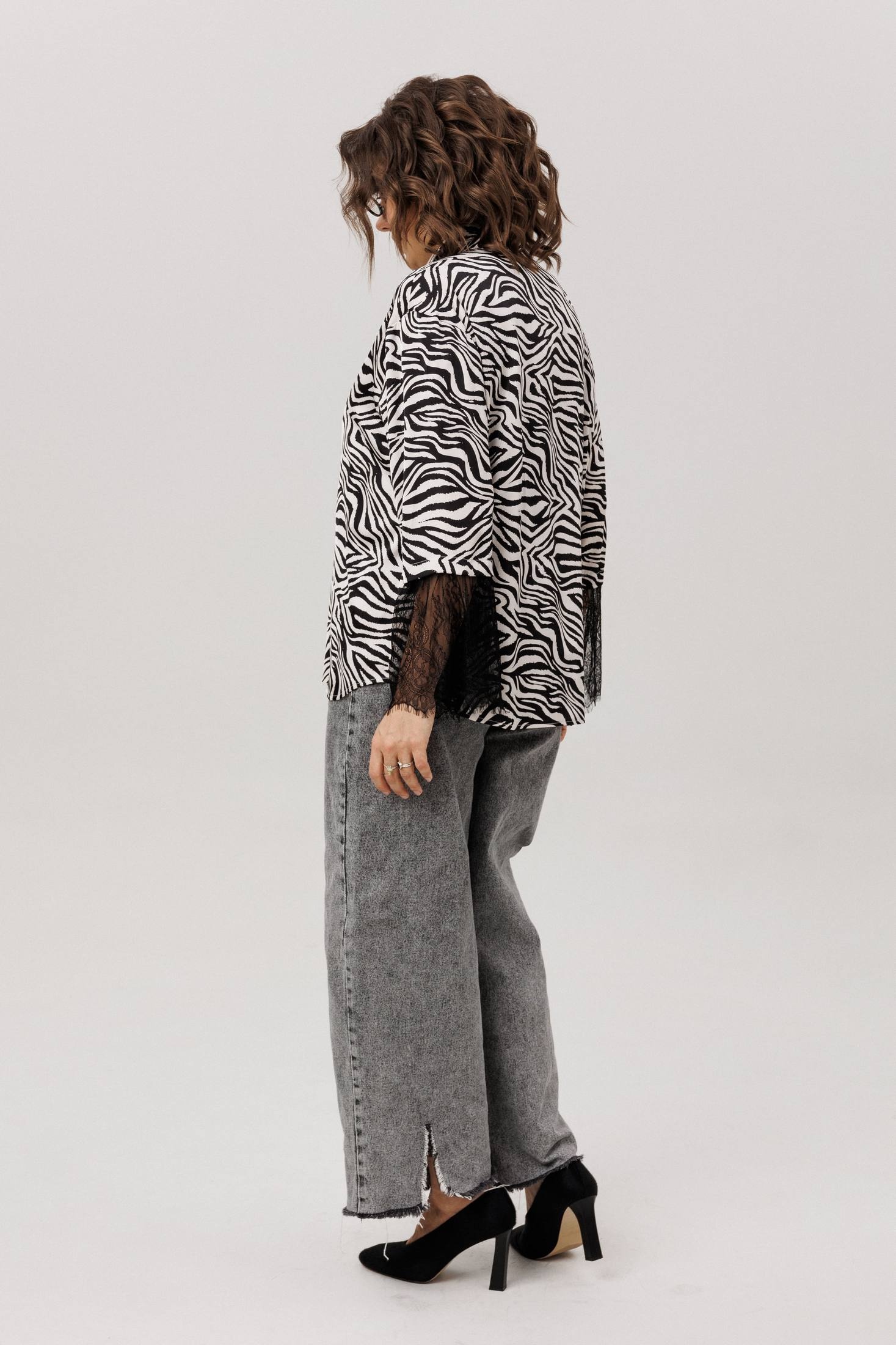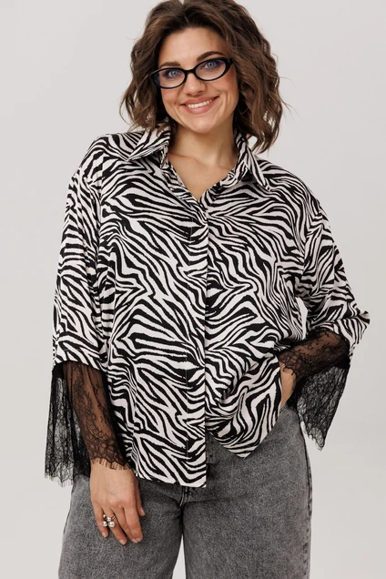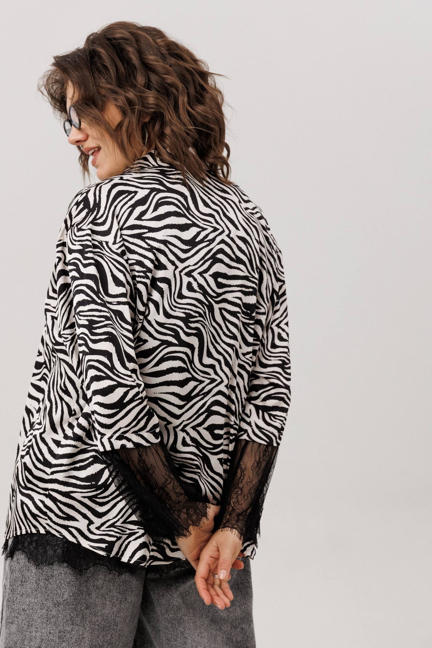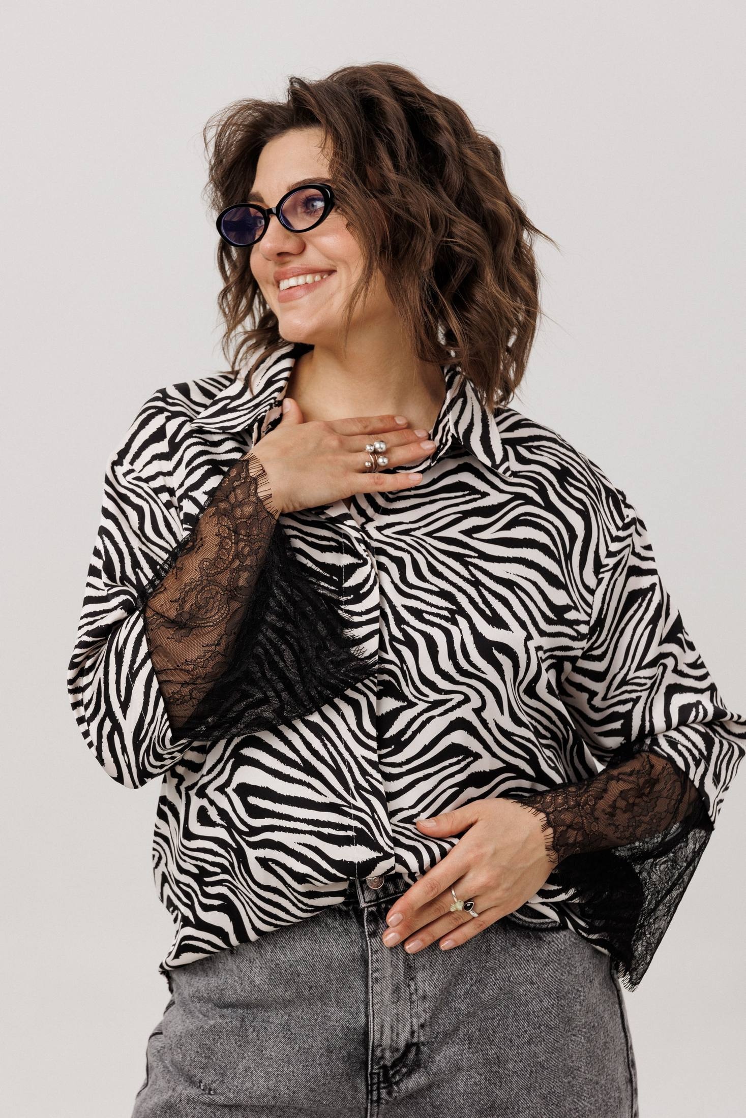 Рубашка 1801 зебра Anelli — это идеальное сочетание стиля и комфорта. Коллекция бренда Anelli предлагает изысканный дизайн с уникальным принтом 'зебра' и воздушными кружевными манжетами. Материал состоит из вискозы, полиэстера и спандекса, обеспечивающих мягкость и практичность. Стильный отложной воротник и скрытая застёжка на пуговицах подчёркивают элегантность модели. Рубашка подходит для повседневной носки или как часть вечернего образа. Длиной изделия 69-71 см, а длина рукава составляет 55-56 см, что делает её удобной для любого времени года.