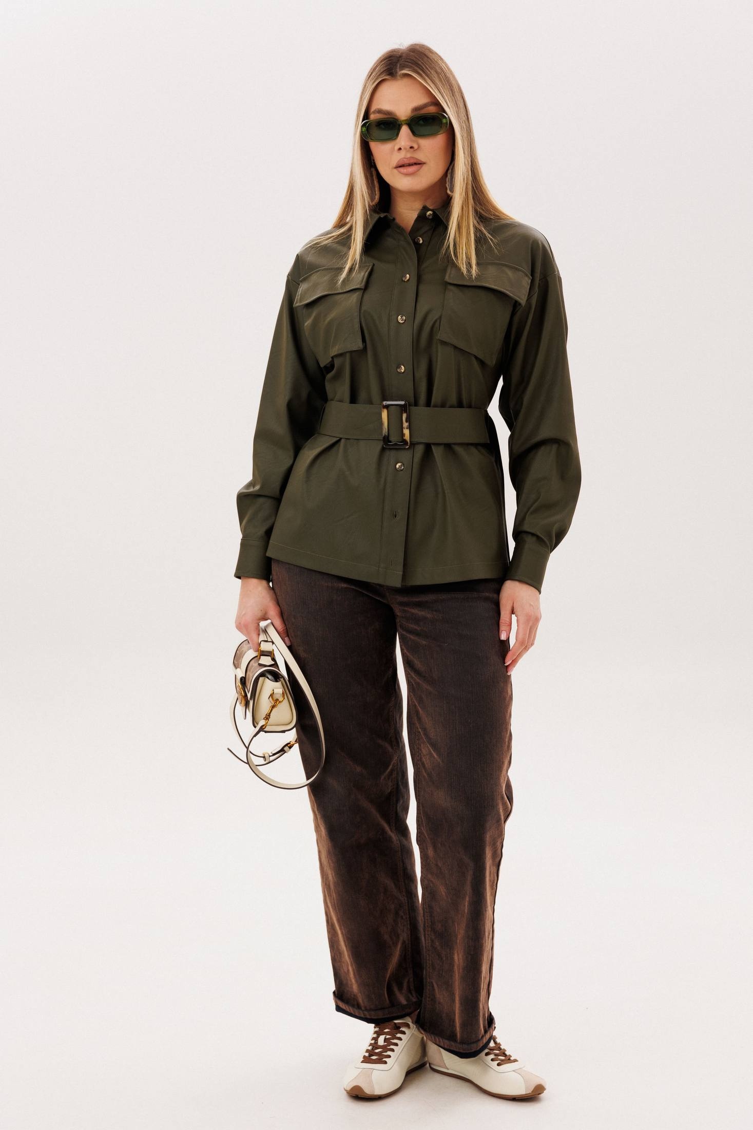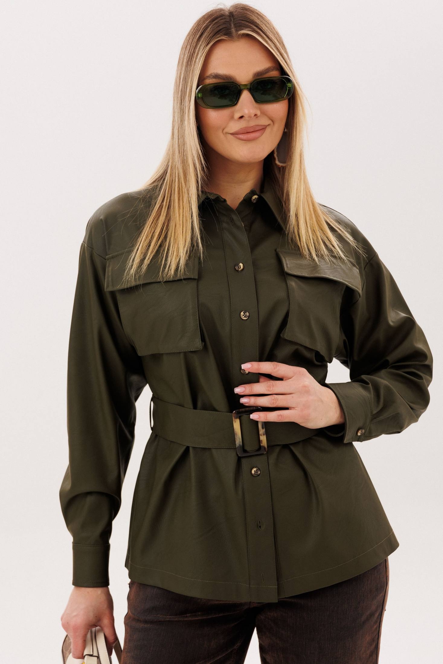 Рубашка 1826 форест скин Anelli представляет собой современное сочетание стиля и комфорта. Эта модель из коллекции бренда Anelli выполнена из мягкой эко кожи, которая держит форму и создает эффектный силуэт. Свободный крой с отложным воротником на стойке придает образу законченности и собранности. Длинные втачные рукава на манжетах добавляют шарм, а застежка-планка на пуговицах обеспечивает универсальность сочетаний. Два накладных кармана с клапанами и разрезы по бокам создают стильный акцент. Пояс из эко кожи позволяет акцентировать талию, создавая женственный силуэт. Темно-зеленый цвет идеально впишется в осенне-зимний гардероб и станет отличным выбором для повседневного ношения, сочетающегося как с джинсами, так и с классическими брюками.