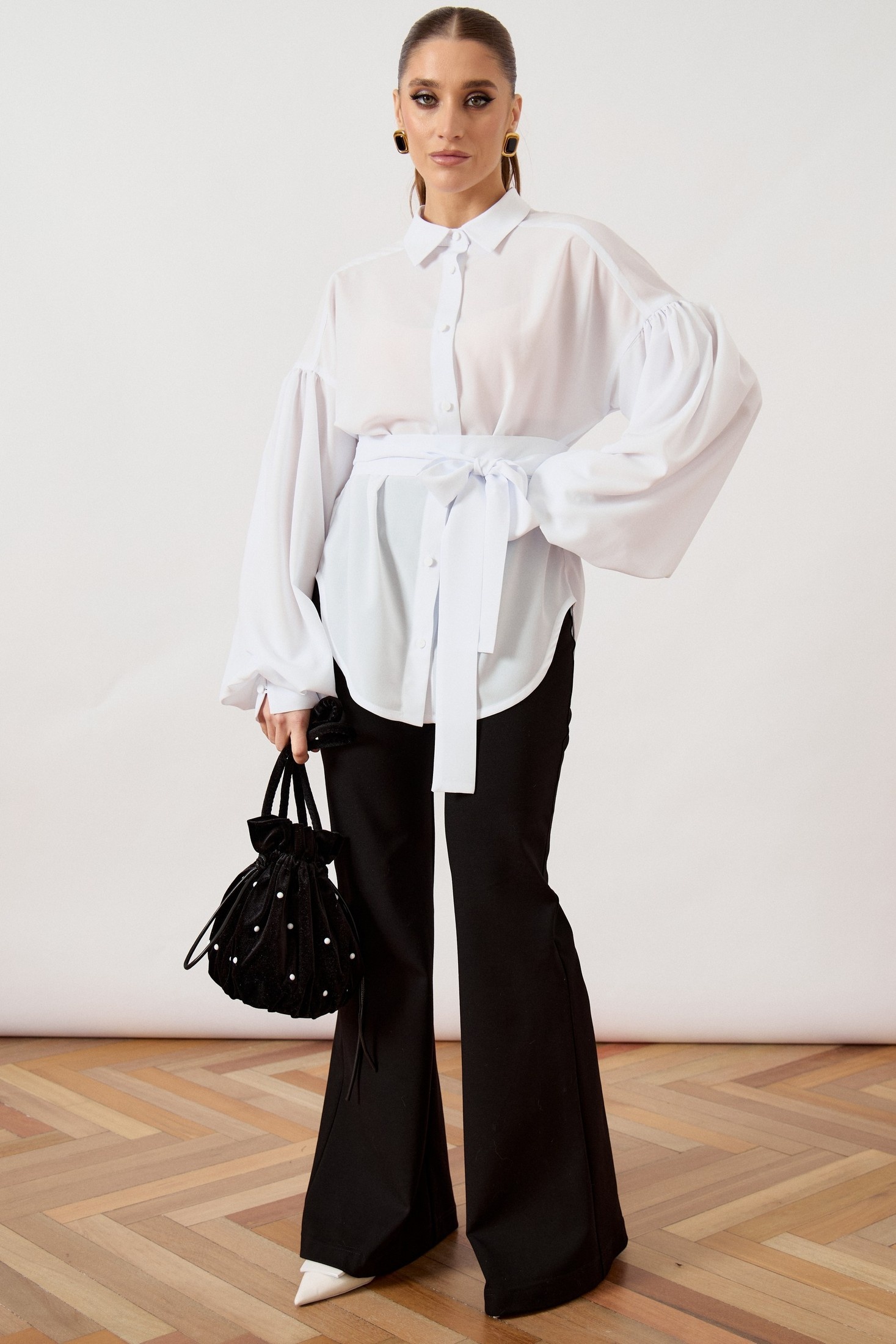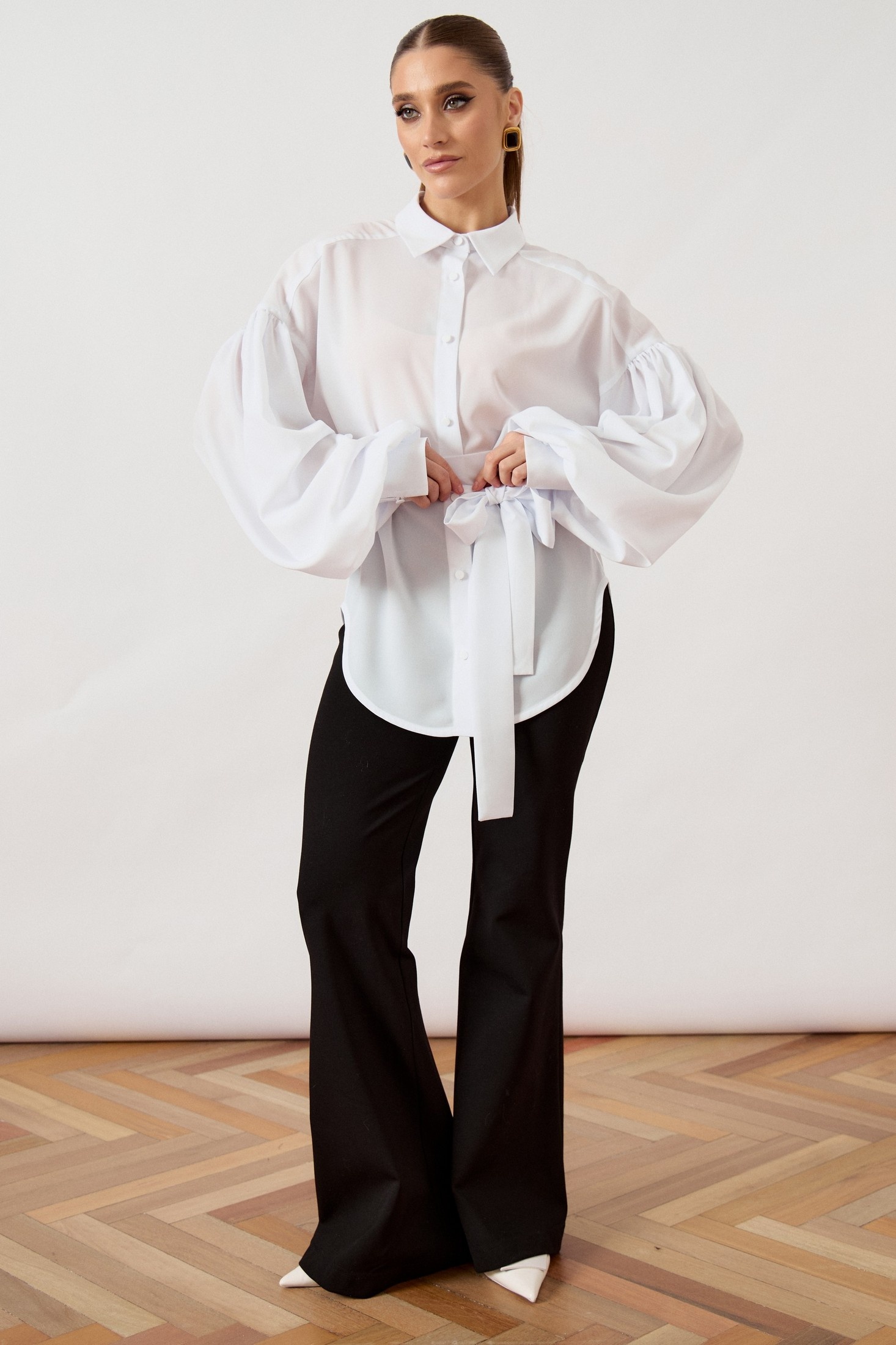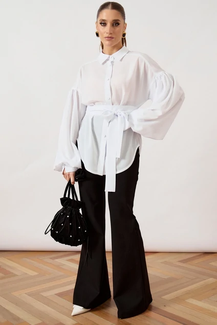 Рубашка 3503 ATTIKA от бренда ATTIKA представляет собой стильный элемент гардероба. Коллекция бренда отличается высоким уровнем дизайна и качества исполнения. Эта рубашка из легкой плательной ткани обладает свободным силуэтом и выраженным оверсайз эффектом. Белый цвет придаст свежести любой комбинации. Особое внимание привлекают объемные рукава-фонарики и съемный пояс-кушак, который завязывается на декоративный бант, подчеркивая линию талии. Идеальный выбор для весны и лета, рубашка подходит для повседневных и нарядных образов. Пуговицы в тон ткани обеспечивают гармоничный внешний вид. Это многофункциональная вещь, которая легко сочетает стиль и комфорт.