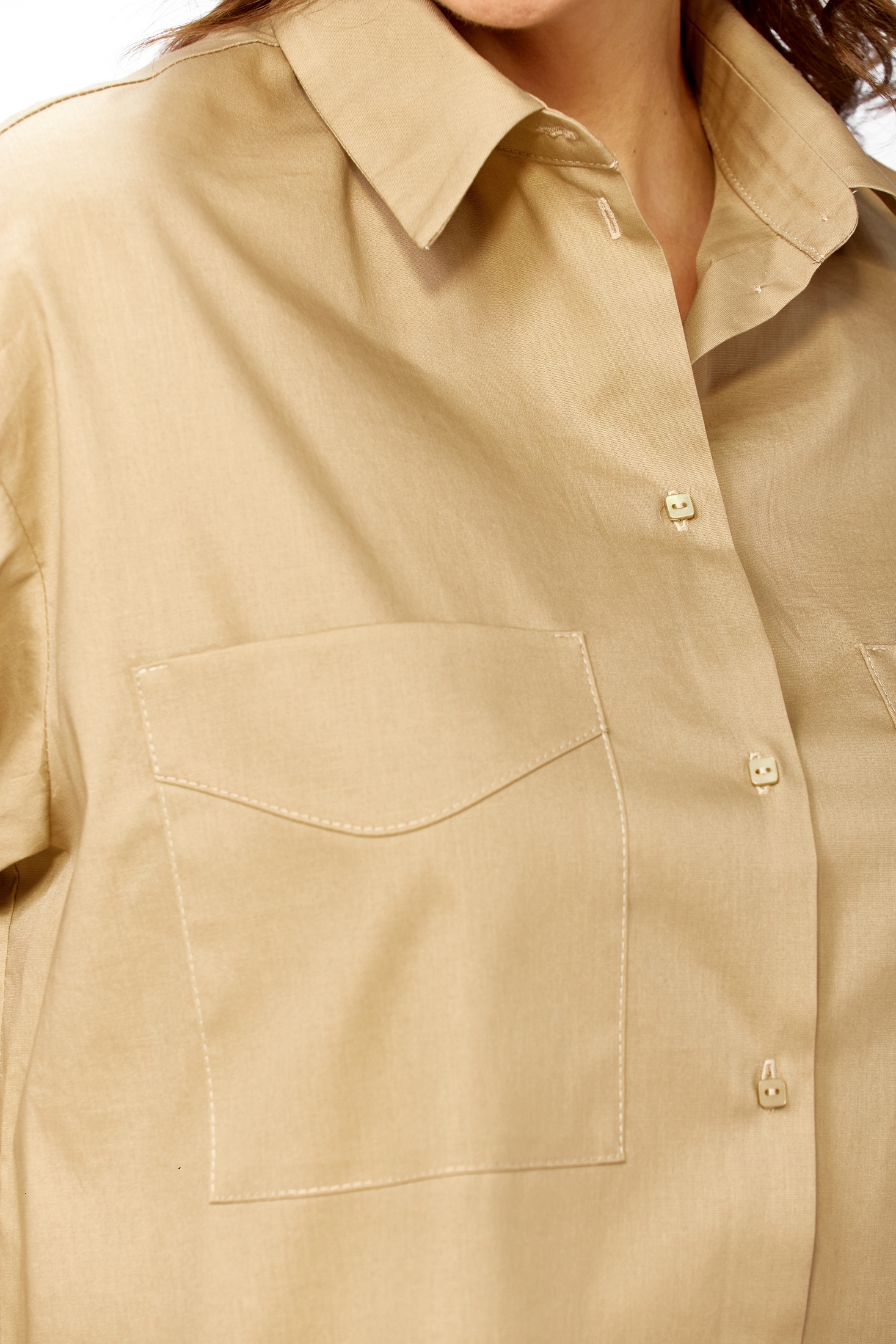 Рубашка 0343-2 AVENUE — это идеальный выбор для вашего гардероба. Коллекция бренда AVENUE предлагает стильную рубашку из качественного поплина, который содержит 97% хлопка и 3% эластана. Свободный силуэт и спущенное плечо обеспечивают комфорт и стиль, идеально подходя как для офиса, так и для повседневной жизни. Модель дополнена рубашечным рукавом с разрезом и манжетой, что добавляет утонченности. Накладные карманы на груди и складка на спинке подчеркивают уникальность дизайна. Рубашка выполнена в бежевом цвете, что делает её универсальным вариантом для любого сезона. Длина изделия по спинке составляет 80 см, а длина рукава с манжетой — 54,5 см.