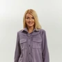 Куртка – рубашка имеет воротник рубашечного типа на стойке, центральную застёжку на петли пуговицы. Рукав двухшовный с застёжкой на манжете по низу. По переду имеется кокетка и настрочены накладные карманы с клапаном. Спинка имеет отрезную кокетку и средний шов. Низ куртки-рубашки удлинён по центру и укорочен по бокам. Все детали отстрочены двойной отделочной строчкой в контрастный цвет. Длина куртки по спинке - 68 см, длина рукава – 61 см.