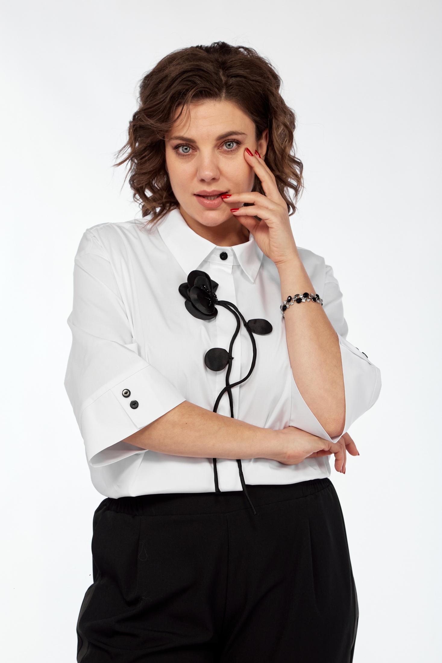 Рубашка 019 Grace for you — современное воплощение комфорта и стиля. Коллекция бренда Grace отличается удобным кроем, подходящим для любой фигуры. Изготовлена из хлопка с добавлением лайкры, что обеспечивает легкость и свободу движений. Прямой силуэт с декоративным цветком на передней планке и потайной застежкой придает изысканный вид. Спущенные плечи и рукав длиной ¾ на притачной манжете с декоративными пуговицами делают рубашку идеальной для офисных будней и повседневных выходов. Представленная в белом цвете, она станет универсальным выбором в вашем гардеробе.
