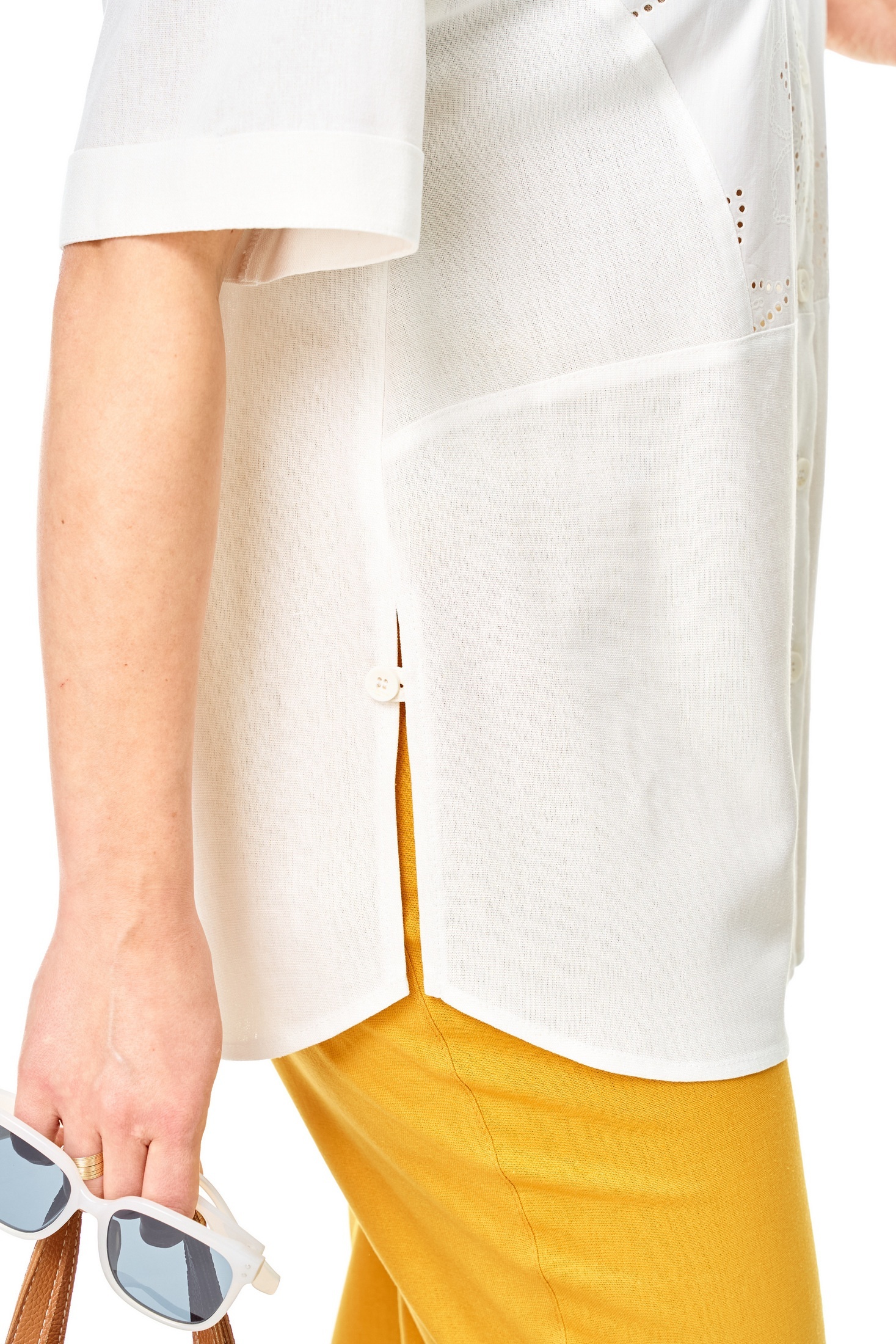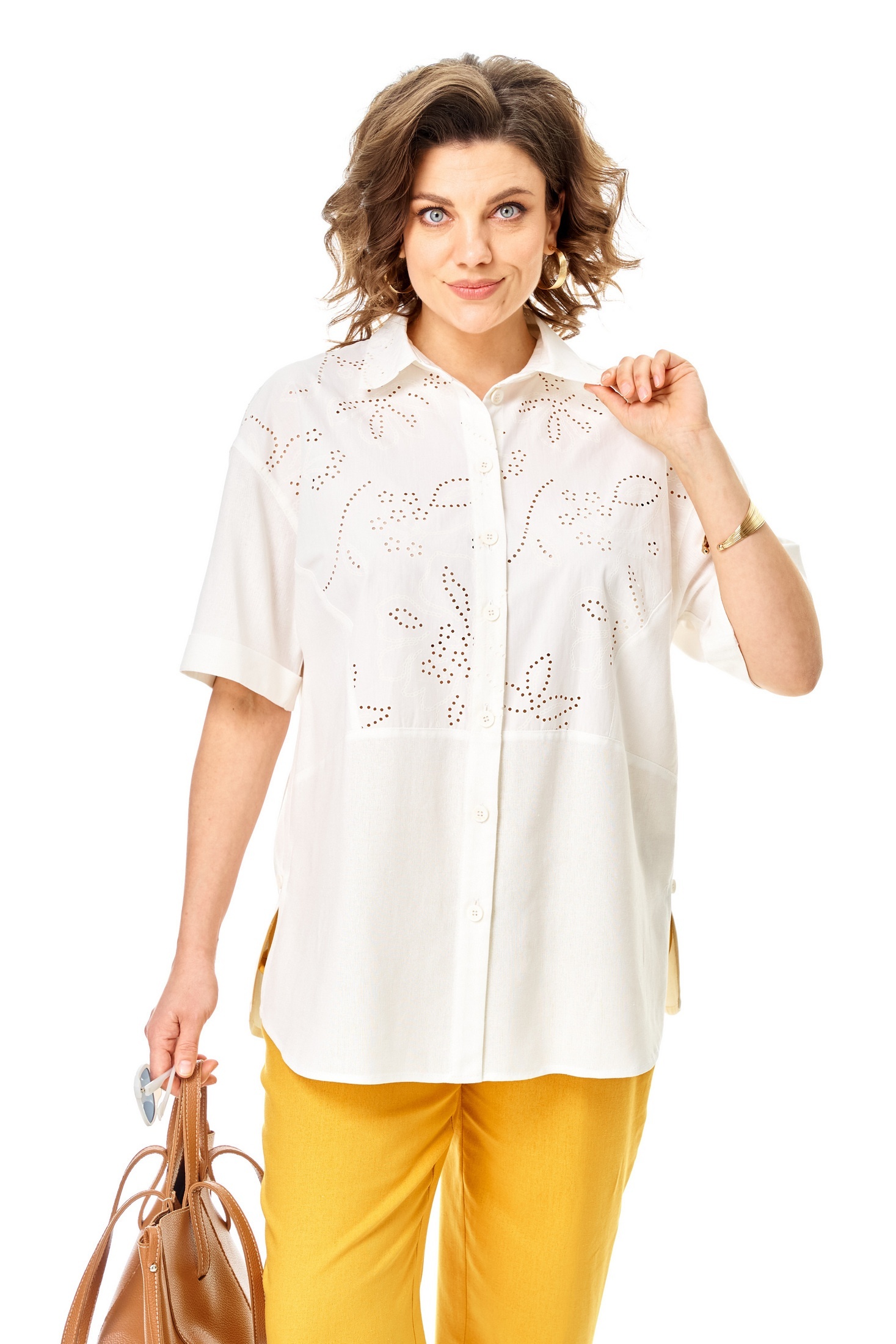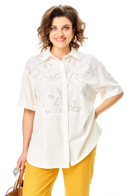 Рубашка 1446Р молочный Karina Delux воплощает в себе сочетание комфорта и стиля. Коллекция бренда Karina Delux предлагает модель из льняной ткани с хлопковыми вставками, которые подчеркивают лёгкость и дышащие свойства. Свободный силуэт и спущенная линия плеча делают эту рубашку идеальной для летнего сезона. Центральная застежка на пуговицы с боковыми разрезами украшена декоративными петельками. Цветочное исполнение из ришелье добавляет романтичности и женственности. Рубашка молочного цвета подойдет как для повседневного, так и для офисного образа, обеспечивая удобство и стиль в одной модели, благодаря смесье льна и вискозы.