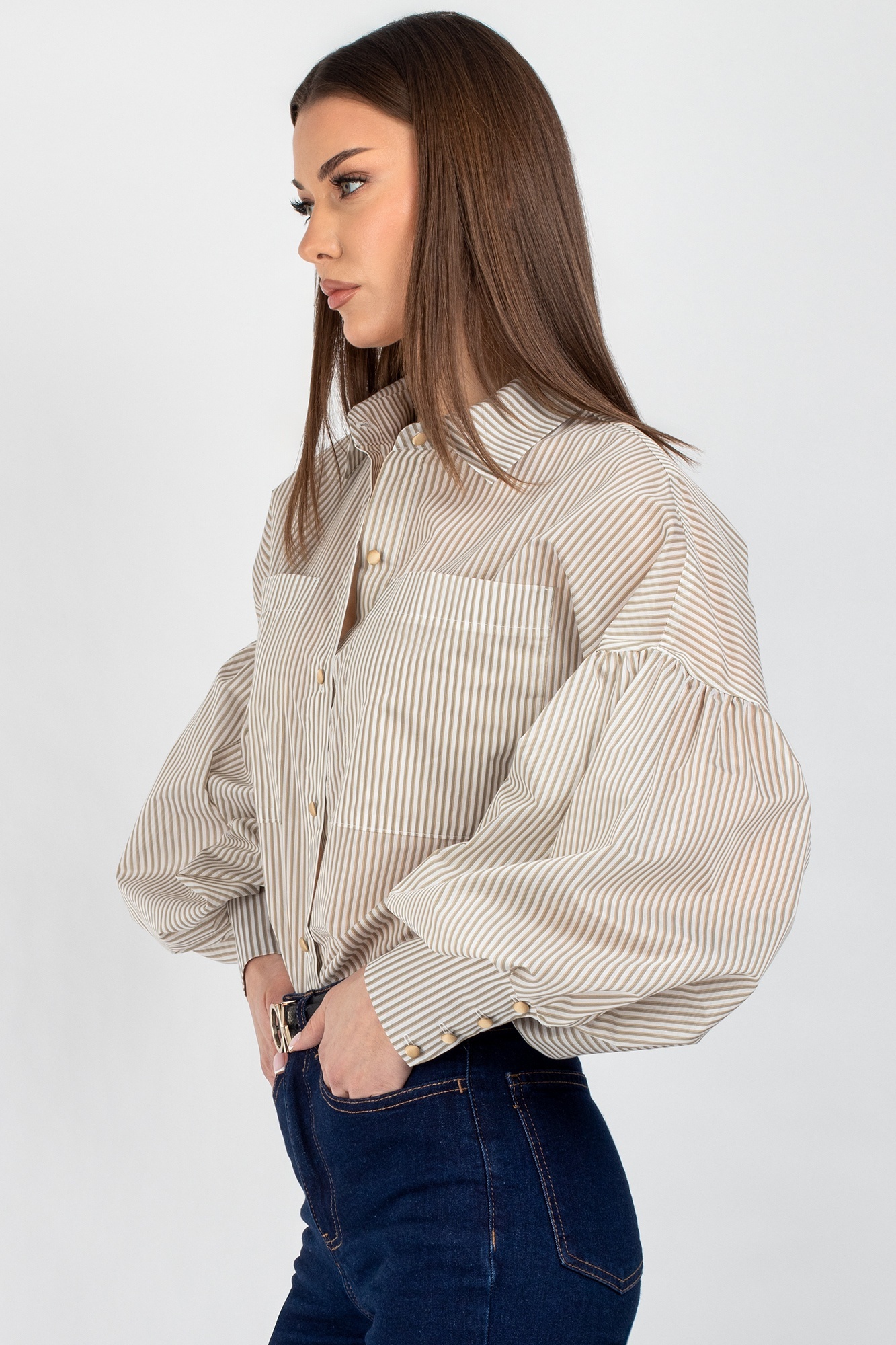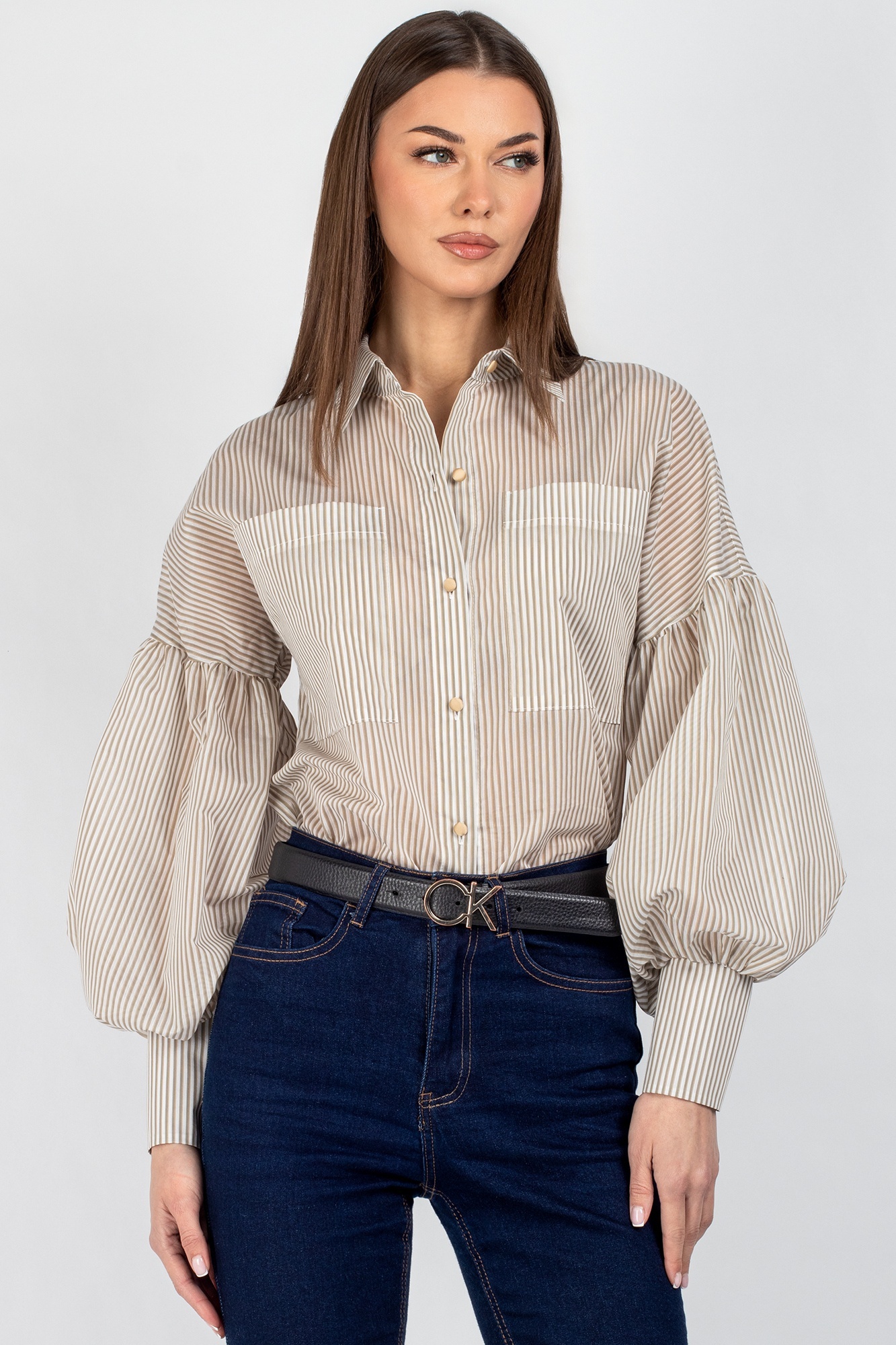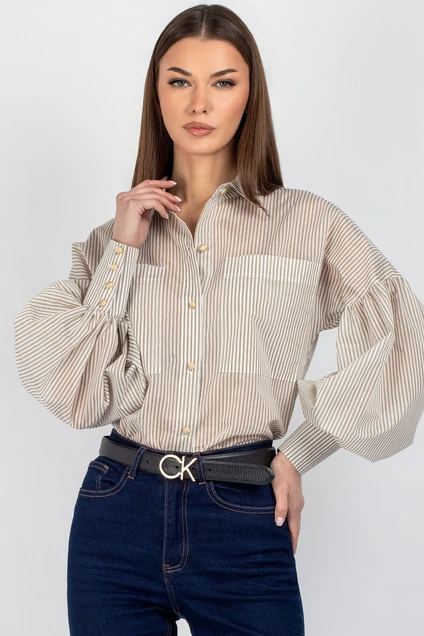 Рубашка 745 бежевая полоска VIZAVI TEKSTIL — это стильное решение для любой женщины. Коллекция бренда VIZAVI TEKSTIL предлагает рубашку в бежевую полоску из хлопка и полиамида. Полуприлегающий силуэт и спущенное плечо создают комфорт и стиль. Практичные карманы и застежка на пуговицы — это не только удобство, но и акцент на уникальность модели. Объёмные рукава с манжетами и застежками подчеркивают современный тренд. Материал дышащий и приятный на ощупь, идеально подходит для весенне-летнего сезона. Универсальный фасон сочетается как с джинсами, так и с юбками, создавая идеальные образы для офиса и повседневных прогулок. Бежевые полоски визуально стройнят и добавляют образу динамичности.