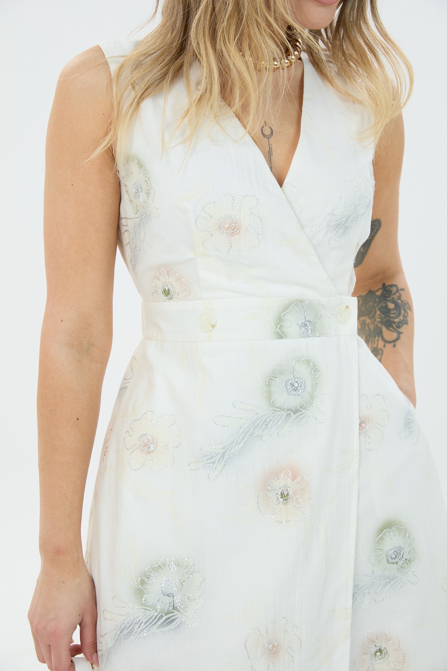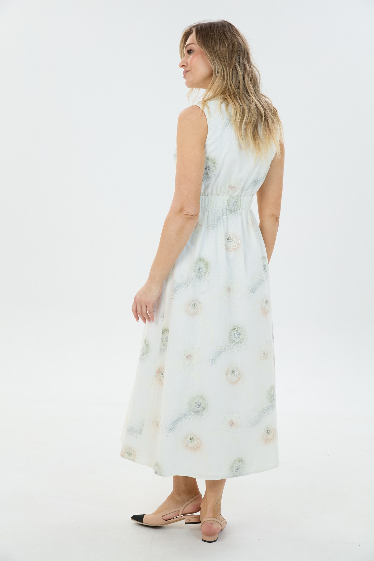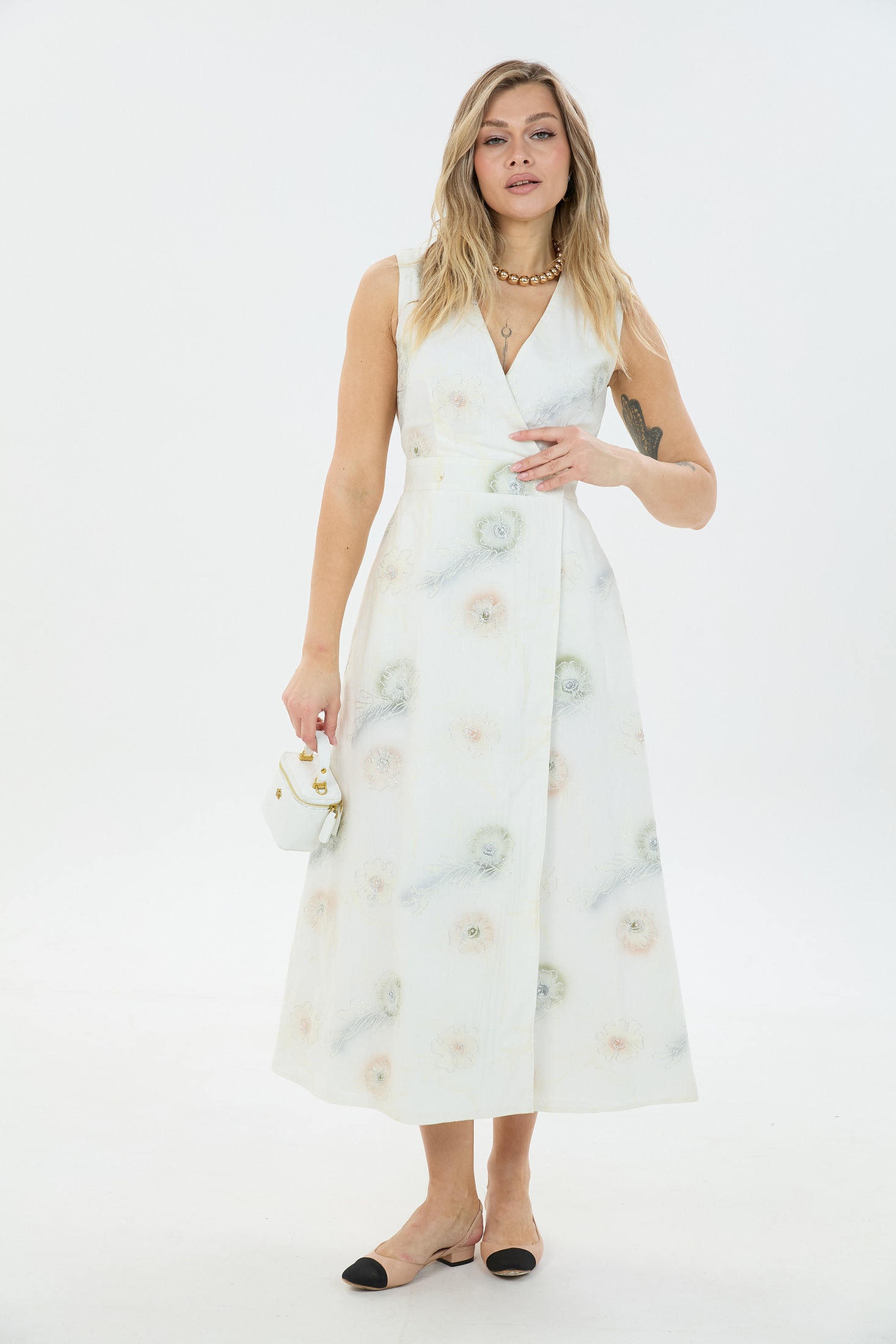 Сарафан М83 LM (Лаборатория моды) — это воплощение нежности и женственности. Коллекция бренда Лаборатория моды подчеркивает вашу индивидуальность благодаря изящному макси-фасону без рукавов и V-образным вырезом декольте. Изготовлен из 100% хлопка, этот сарафан обеспечивает комфорт и легкость движений. Эластичная резинка на спинке позволяет удобно регулировать посадку по талии, создавая идеальный силуэт. Застёжка на запах на функциональные петли и пуговицы добавляет особую стильную нотку. Идеален для весенне-летнего сезона, его утонченный цвет и рисунок создают атмосферу нежности и легкости. Прекрасно подходит как для повседневного, так и для праздничного образа.