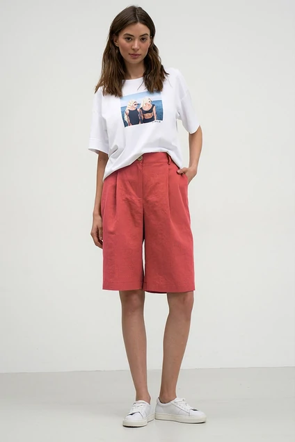 Натуральный лен - единственный материал, который способен охлаждать даже в самую сильную жару, поэтому изделия из такого материала пользуются невероятной популярностью. Остановив свой выбор на брюках свободного кроя из льняной ткани, Вы будете выглядеть презентабельно и чувствовать себя максимально комфортно. Шорты свободного кроя, с карманами в боковых швах и вытачками на задних половинках. Данная модель удачно сочетается с жилетом М3816J. Возможно отличие фотографии по оттенку, связанное с разной цветопередачей монитора.
