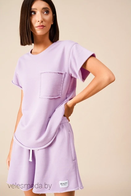 Шорты женские прямого кроя. Пояс шорт на широкой резинке со сборкой и кулиской. В боковых швах карманы. По заднему полотну шорт прорезной карман «обманка». Низ шорт не обработан. Длина шорт 39 см.