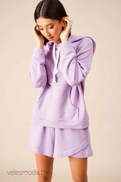 Шорты женские прямого кроя. Пояс шорт на широкой резинке со сборкой. Низ шорт двухслойный, фигурный . В боковых швах карманы. Длина шорт 39 см.