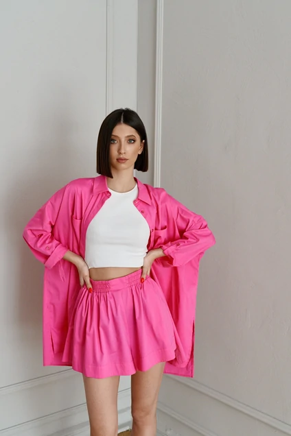 Шорты женские прямого , свободного кроя. Пояс шорт - резинка со сборкой. В боковых швах карманы. Длина изделия 39 см.