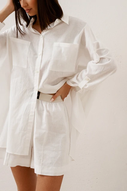Шорты свободного кроя выполнены из хлопкового полотна белого цвета. Легкие комфортные шорты позволят Вам отобразить летние образы, сочетаются с футболками, топами, рубашками.