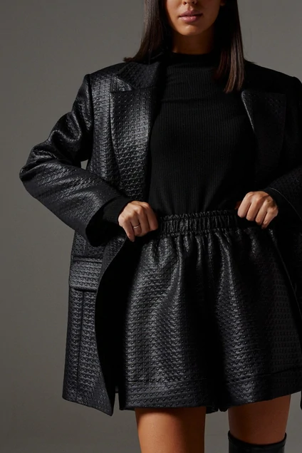 Шорты выполнены из фактурной ткани. Шорты прекрасно дополнят Ваш гардероб и позволят создать разные образы. Образ дополнит жакет из действующей А 5103. Характеристики: прямой крой, пояс стабильный по поясу нашиты шлевки, прорезные карманы по переду. Длина 42 см.