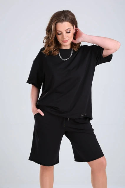 Трикотажные шорты, по талии резинка и шнурок. На передних половинках карманы хулиганы. На задней половинке карман обманка, низ шорт не обработан. Длина по боковому шву 55 см. Длина по шаговому шву 29 см.