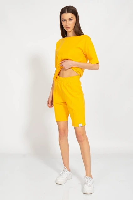 Шорты средней посадки с отделкой в виде канта по деталям переда и карманами в боковых швах. Ткань 2-х ниточный футер с изнанкой из хлопка, качество Пенье, плотность 265 г.м2
