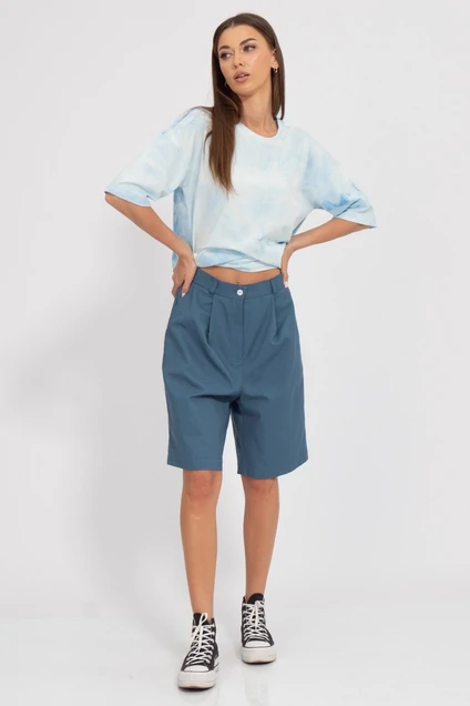 Льняные шорты свободного силуэта, удлинённые до колена, изготовлены из ткани, содержащей лён и вискозу. Этот материал сочетает в себе мягкость и эластичность вискозы с прочностью и жёсткостью льна. Шорты обеспечивают комфорт и хорошую вентиляцию благодаря способности ткани пропускать воздух и впитывать влагу. Лен повышенной плотности.