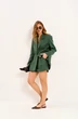 Шорты женские свободного кроя, расширенные к низу, с манжетами. На передних половинках брюк обработаны боковые прорезные карманы в рамку.Застежка на тесьму молния с потайной пуговицей и брючным крючком. Пояс брюк обрабатывается корсажной тесьмой. По поясу настрочены шлевки для ремня. По передней половинке заложены две складки . Задние половинки с вытачками. На задних половинках обработаны прорезные карманы в рамку.