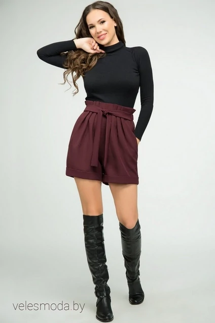 Л-1374/1 шорты женские На передних половинках шорт заложены односторонние складки. Задние половинки собраны на резинку. Завязывающийся пояс от боковых швов. Низ шорт с отворотом шириной 4 см. Ткань –костюмно-плательная Длина шорт - 44 см(±2) Размер Обх.талии(шорты) Обх.бедер(шорты) 44 64/96 116 46 69/96 120 48 72/100 124 50 76/106 128