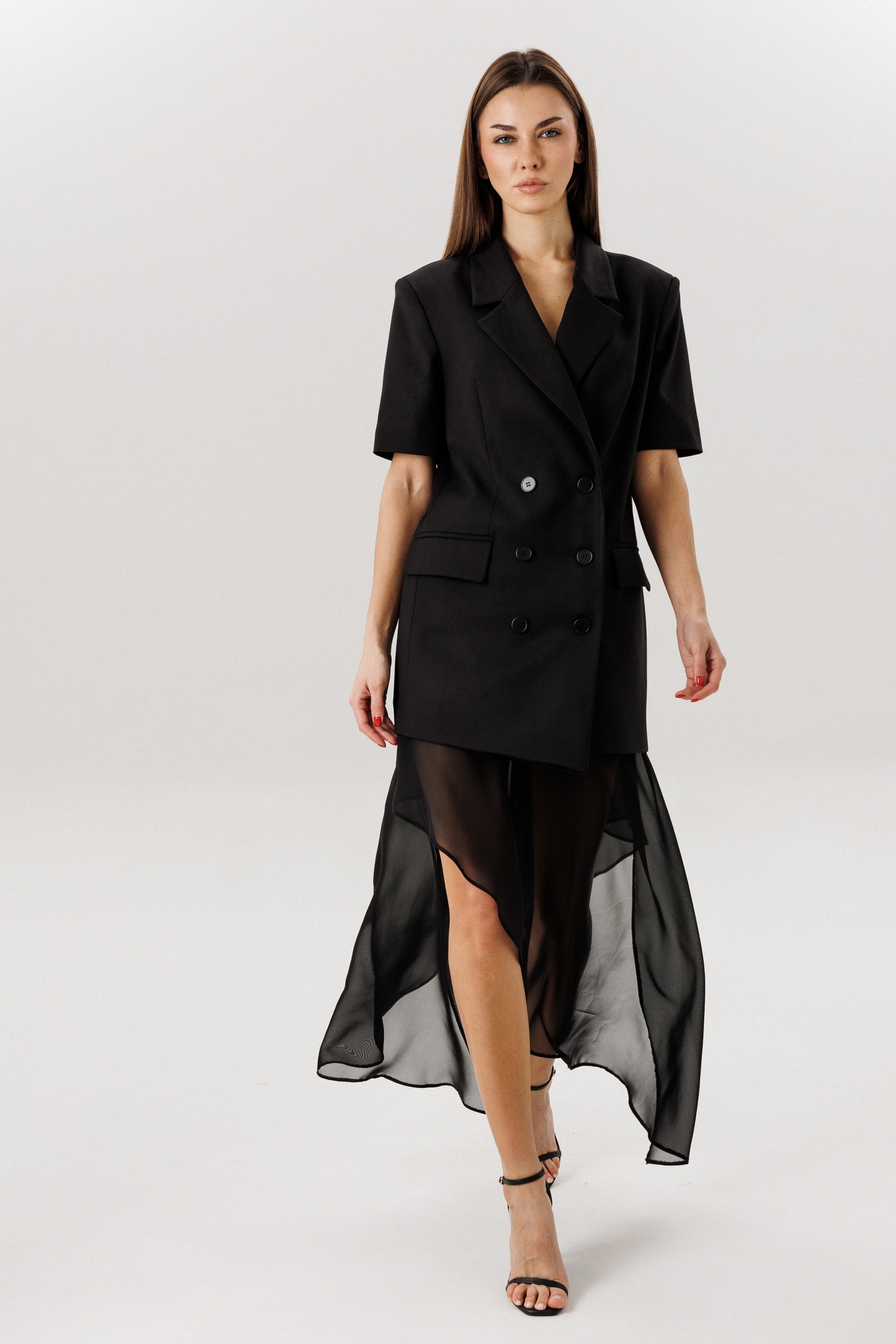 – выполнена из шифоновой ткани на подкладке мини шортами