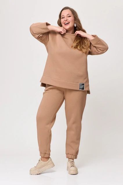 Комплект женский 2-х предметный ( джемпер, брюки) из футера с начесом,"OVERSIZE", очень теплый. Джемпер прямого силуэта со спущенным плечом, по бокам разрезы, по горловине - стойка, спинка длиннее полочки. Низ рукава можно отвернуть как манжету. По низу джемпера идет декоративная нашивка. Брюки в спортивном стиле, внизу манжета на резинке, по бокам карманы, пояс на резине. Длина спинки: (50-54)-67 см., (56-60)-69 см. Длина рукава: (50-54)-50 см., (56-60)-51 см., Длина брюк с манжетой: (50-54) - 93 см, (56-60) - 96 см