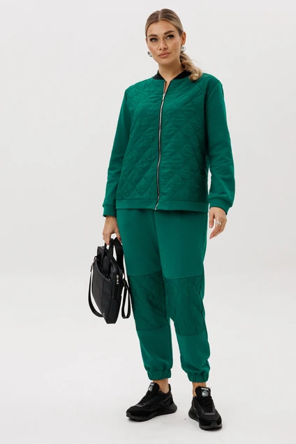 Стильный женский спортивный костюм из стежки и трикотажного футера от Anastasia станет незаменимой частью гардероба для активного отдыха и повседневной носки каждой модницы. Выполнен из высококачественного футера трехнитка и стильной стеганной ткани. Состоит из полуприталенного джемпера и спортивных брюк - джоггеров с высокой посадкой и боковыми карманами. Материал теплый и приятный, отлично подойдет для прохладной летней погоды, а прохладными осенними вечерами заменит собой куртку ветровку или толстовку. Эластичные манжеты на рукавах и по низу брючин, а также мягкая резинка на поясе обеспечивают комфортную посадку и носку и не будут стеснять движения. Наслаждаться спортивными активностями будет комфортно. Комбинирование стеганной ткани и трикотажа создает гармоничный индивидуальный образ. Костюм спортшик подходят для различных видов деятельности: от утренних пробежек до поездок по городу на велосипеде или встреч с друзьями в кафе. Подойдет как для взрослых женщин и девушек, в том числе кто предпочитает большие размеры, так и для девочек подростков. Ткань долговечная, простая в уходе, не мнется и не скатывается, а оригинальный дизайн - стежка позволит всегда оставаться в центре внимания! Независимо от того, занимаетесь ли вы спортом, ходите в такой одежде дома или просто хотите выглядеть стильно и модно - наш костюмчик станет верным спутником. Почувствуйте себя уверенно и комфортно с стильным костюмом от "Анастасия"! Комплект без подклада, не на флисе, без начеса, ткань не просвечивает. Длина джемпера по спинке: (60)-61см, (62-66)-63см. Длина рукава: (60)-63см, (62-66)-64см. Длина брюк: (60)-99см, (62-66)-102см
