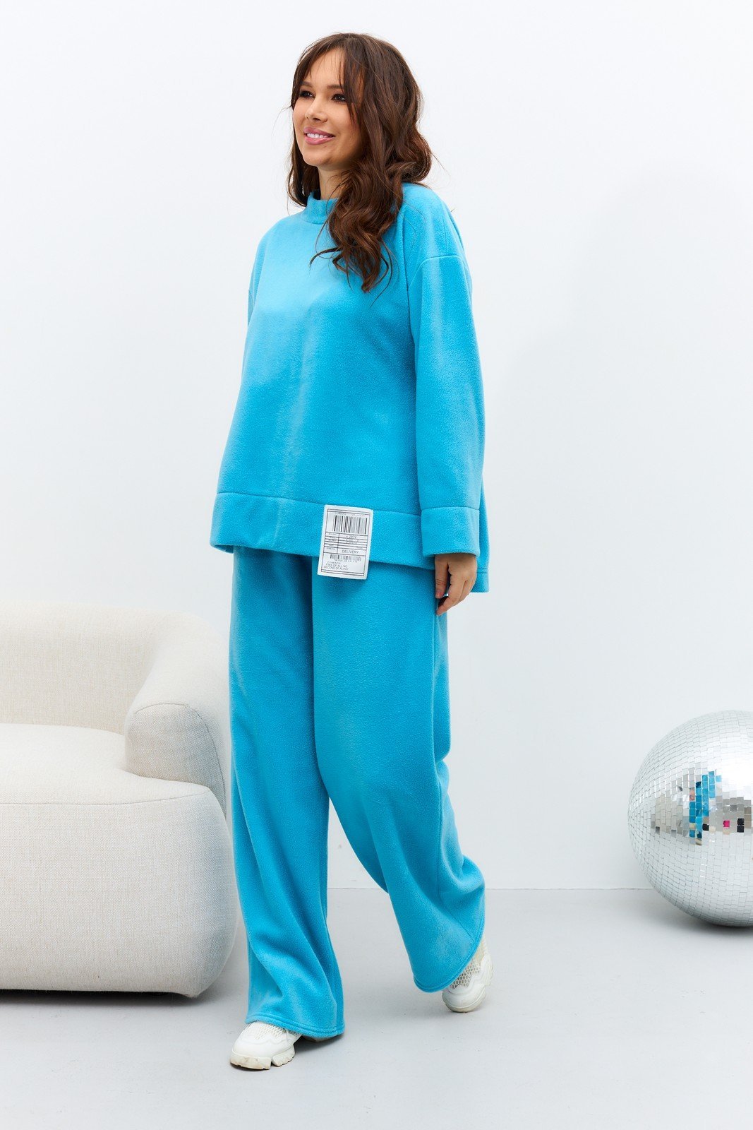 Очень теплый комплект женский 2-х предметный ( джемпер, брюки) из флисовой ткани ,"OVERSIZE". Джемпер прямого силуэта со спущенным плечом, по бокам разрезы, по горловине - стойка, спинка длиннее полочки. Низ рукава можно отвернуть как манжету. По низу джемпера идет декоративная нашивка. Брюки прямые, по бокам карманы, пояс на резине. Длина спинки: (46-50)-68 см., (52-54)-71 см. Длина рукава: (46-50)-50 см., (52-54)-51 см., Длина брюк: (46-50) - 104 см, (52-54) - 107 см