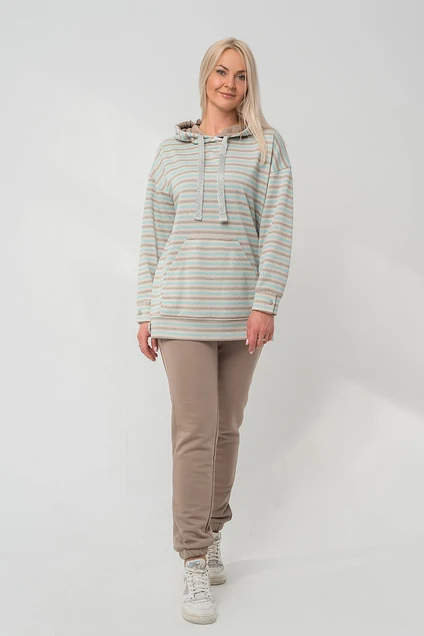 Комфортный костюм из хлопка. Худи свободного кроя с накладным карманом-кенгуру, с капюшоном с декоративными шнурками