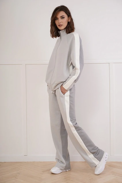 Перед тем, как отправиться на прогулку, шоппинг или активный вид отдыха, каждая из нас задумывается об одежде, которая будет практичной и одновременно стильной. Мы создали для вас спортивную капсулу, включающую несколько моделей худи, брюк и юбку, обьединенных общим стилистическим решением. Это позволяет составить комплект, который подходит именно вам, в котором вы точно почуствуете себя уверенно и комфортно. Худи на молнии, что может быть удобнее! Покрой - реглан, воротник высокая стойка. Полочка с центральной застежкой на тесьму-молнию и боковым карманом с листочкой. По низу рукава - притачной манжет. По низу изделия - притачной пояс. Худи выполнен в стиле колор-блок. Брюки в расслабленном стиле выполненные также в технике колор-блок. Высокая посадка, боковой карман с листочкой, эластичный пояс с люверсами и отделочным шнуром. Длина брюк около 104 см.