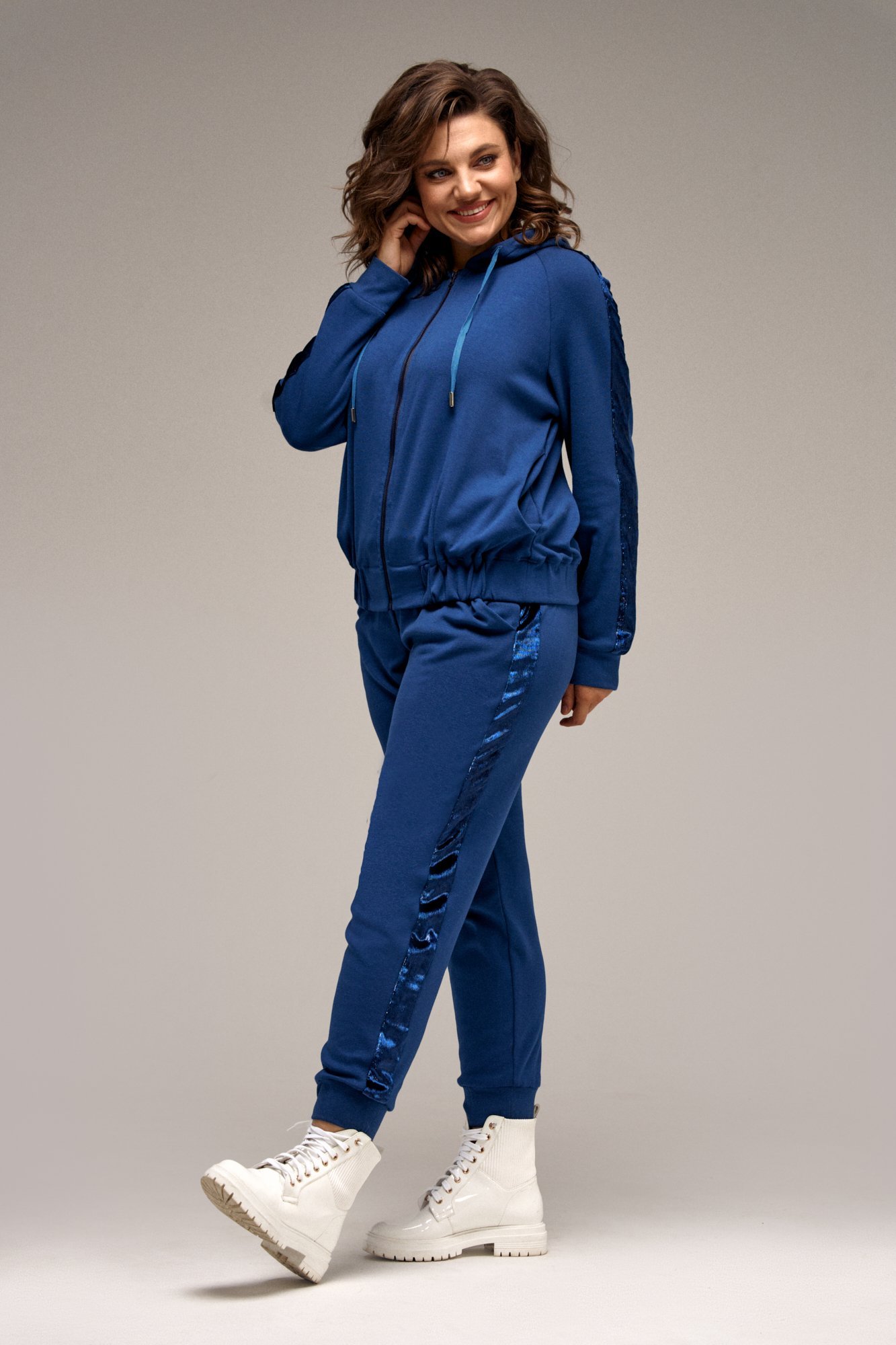 Костюм для активного образа жизни из приятного высококачественного трикотажа, состоящий из толстовки и брюк. Толстовка свободного силуэта с рукавами-реглан и капюшоном. По переду застежка на молнию, карманы в боковых швахб, по рукавам вставки из декоративной ткани. Брюки свободного силуэта на поясе с резинкой, по бокам вставки из декоративной ткани, карманы в боковых швах. В капюшон и пояс брюк вставлена декоративная тесьма.