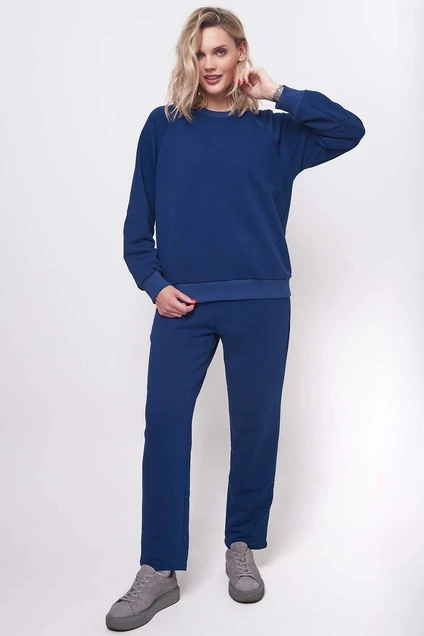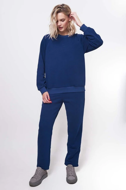 Athleasure женский повседневный костюм, спортивного стиля. Отлично подойдёт для дома, прогулок, путешествий и отдыха. Пошит из комфортной универсальной ткани (петельного футера 3-нитки). Костюм состоит из свитшота и брюк. Свитшот прямого силуэта, с рукавами покроя реглан и притачной манжетой по низу. Вышивка – логотип в левой части переда в цвет ткани. Рукава длинные с притачной манжетой. Брюки с притачным поясом, резинкой и шнурком внутри. Передняя половинка брюк с боковыми карманами.Футер 3-нитка диагональ (без начёса) качества пенье.