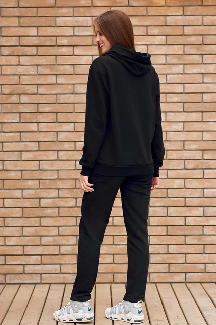 Повседневный спортивный костюм в стиле athleasure, который подойдёт для дома, прогулок, путешествий и просто отдыха. Пошит из комфортной всесезонной ткани (петельного футера 3-нитки). Костюм состоит из худи и брюк. Худи с капюшоном – прямого силуэта, по низу изделия с притачной манжетой. На переде карман — кенгуру и вышивка – логотип по центру переда в цвет ткани. Рукава втачные одношовные длинные с притачной по низу манжетой. Брюки прямые с притачным поясом, резинкой и шнурком внутри. Передняя половинка брюк с боковыми карманами.Футер 3-нитка диагональ (без начёса) качества пенье.
