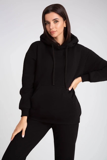 Спортивный костюм 61303-1 черный IVARI — идеальный выбор для комфортных прогулок и тренировок. Коллекция бренда IVARI предлагает утепленный костюм из мягкого трикотажного полотна с высоким содержанием хлопка, обеспечивая тепло и уют в холодное время года. Удлиненное худи свободного силуэта с капюшоном на запах и декоративными завязками придаст вам стильный вид. Спущенная линия плеча и манжеты-резинки на рукавах и по низу изделия добавляют комфорта. Брюки с высокой посадкой на талии и косыми боковыми карманами созданы для активного образа жизни. Черный цвет костюма делает его универсальным выбором для любой ситуации.