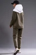 Худи с двухцветным дизайном привлекает внимание благодаря отделочной кокетке. Она добавляет неповторимости и стиля этому утепленному комплекту.