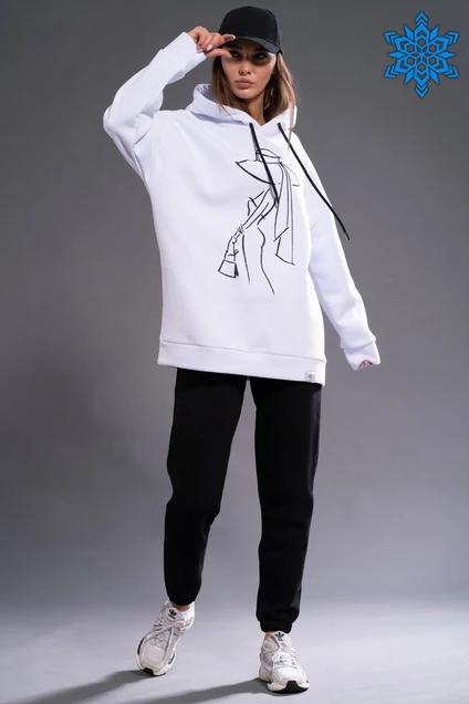 Костюм худи и брюки. Худи с принтом является настоящим привлекательным фокусом. Оно добавляет этому изделию неподражаемый вид и делает его неповторимым. Брюки с зауженным прилегающим силуэтом подчеркивают твою фигуру и придают образу элегантности. Низ брюк обработан резинкой, обеспечивая надежную фиксацию.