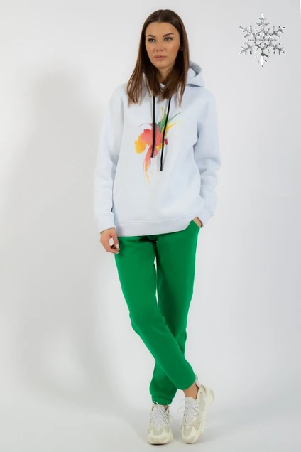 Костюм Classic, утепленный на флисе с нанесением принта. Худи Classic модели 4055 с капюшоном на подкладке из основной ткани, с карманами в боковых швах. Брюки модели 4053 средней посадки зауженные к низу с карманами в боковых швах. Обработка низа брюк резинка. Ткань футер (3-х ниточный) с внутренним слоем утепленным начесом, качество Пенье, плотность 380 г.м2