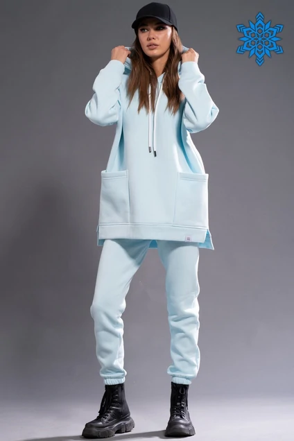 Костюм ОВЕРСАЙСЗ, утепленный на флисе. Худи Oversize модели 4057 с капюшоном на подкладке из основной ткани, с боковыми накладными карманами, с боковыми разрезами по низу изделия, удлиненная спинка. Брюки модели 4056 средней посадки зауженные к низу с карманами в боковых швах. Обработка низа брюк резинка. Ткань футер (3-х ниточный) с внутренним слоем утепленным начесом, качество Пенье, плотность 395 г.м2