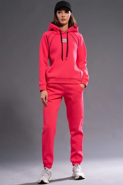Костюм утепленный на флисе. Худи с рукавом реглан с капюшоном на подкладке из основной ткани, элементы обработки кантом. Брюки модели 4053 средней посадки зауженные к низу с карманами в боковых швах. Обработка низа брюк резинка. Ткань футер (3-х ниточный) с внутренним слоем утепленным начесом, качество Пенье, плотность 380 г.м2