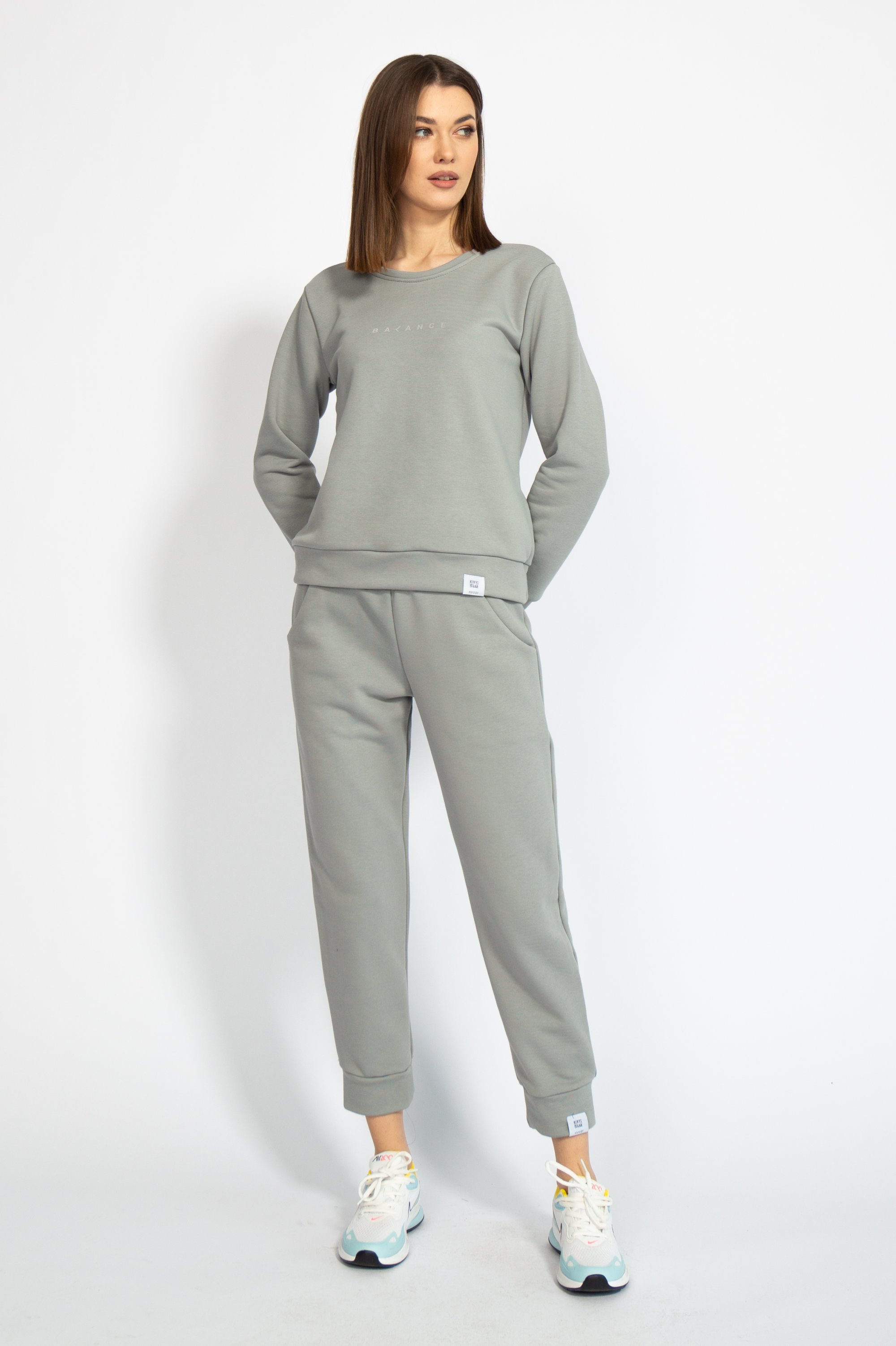 Костюм. Классический свитшот с логотипом BALANCE (на однотонах), укороченной модели. Брюки-джоггеры, укороченные, средней посадки, зауженные к низу с карманами в боковых швах. Обработка низа брюк манжета из основной ткани. Ткань футер 3-х ниточный с внутренним слоем на петельной основе, качество Пенье, плотность 435 г.м2. Максимально качественная ткань с софт текстурой. Уход - Только деликатная стирка 30 градусов - Не использовать отбеливатели - Изделие вывернуть наизнанку
