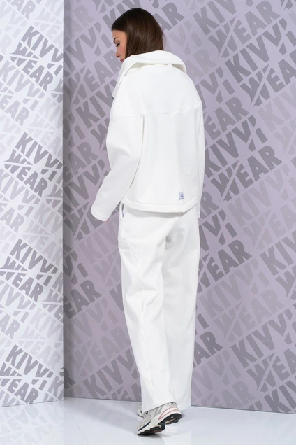 Брюки слегка расширены к низу, что придает им элегантность и легкость. Брюки имеют карманы в боковых швах, где вы можете удобно хранить мелкие вещи. Кокетка по спинке подчеркивает линию талии и делает силуэт более изящным. Брюки выполнены из трехниточного футера с изнанкой на флисе премиального качества, который обеспечивает тепло и мягкость.
