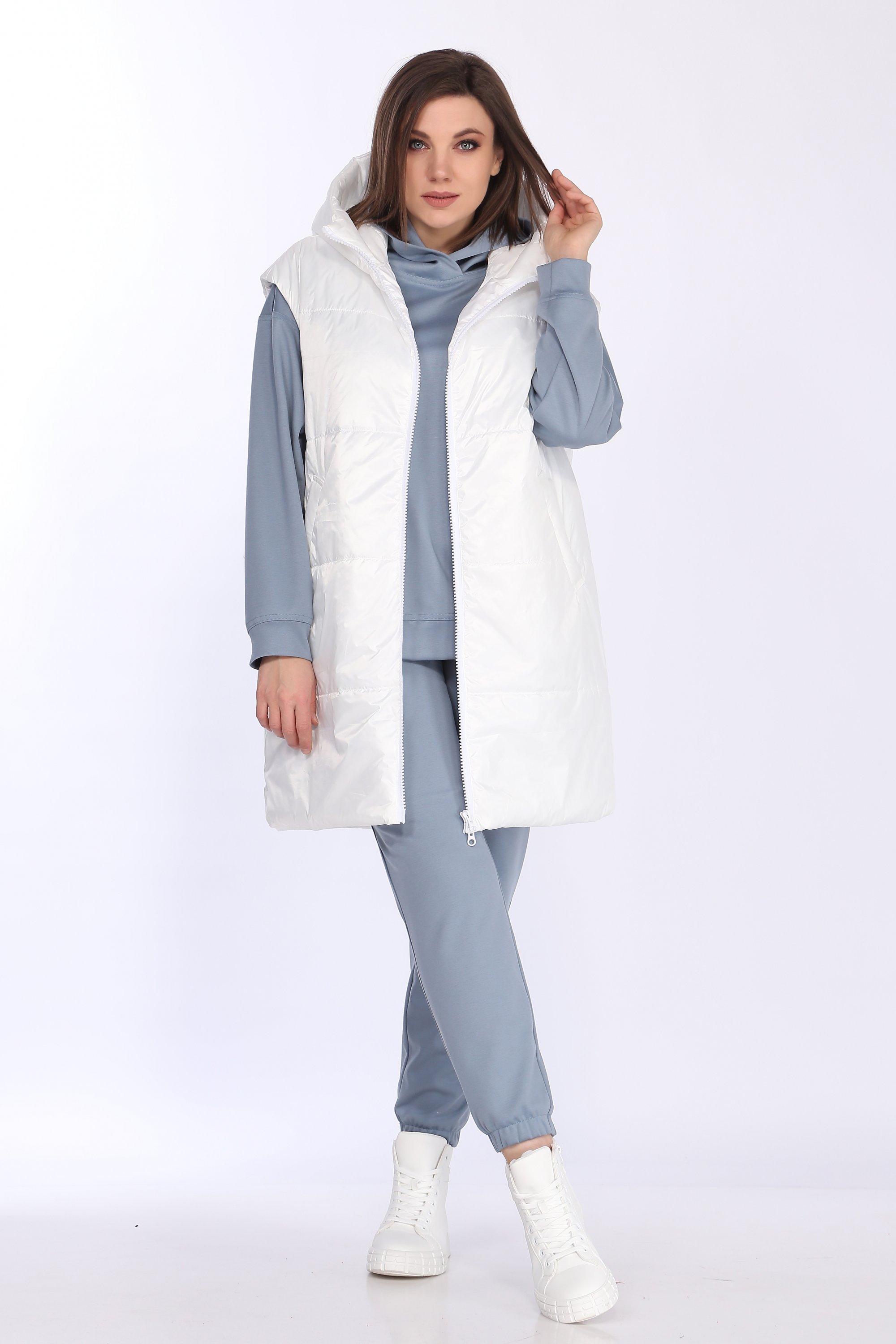 Стильный спортивный комплект тройка. Стильный Удлиненный стеганный жилет свободного силуэта с капюшоном, прорезные карманы с листочкой, по низу регулируемая кулиса. Утеплитель «ISOSOFT» 120 г. на метр кв. Застежка молния.