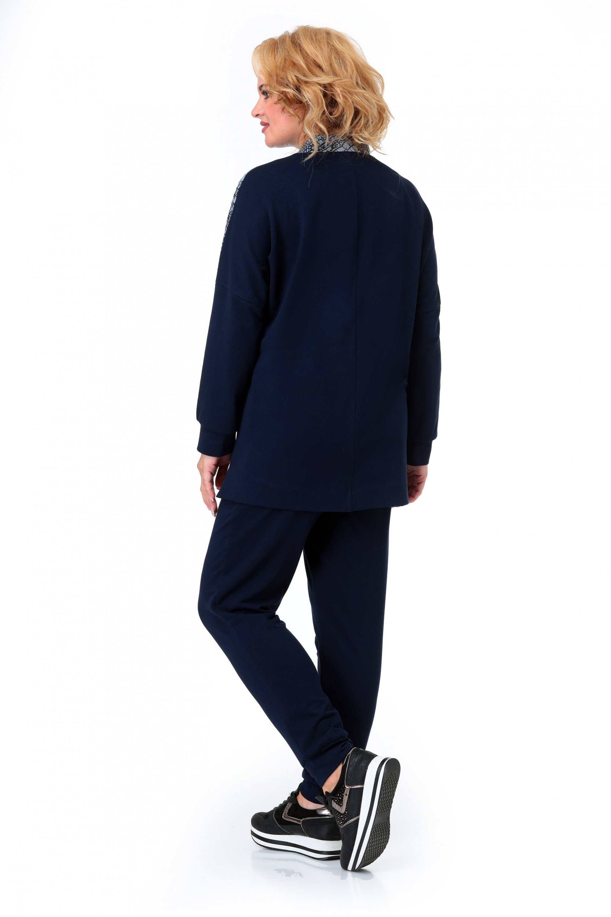 Универсальный женский костюм в спортивном стиле. Толстовка на молнии выполнена из трикотажа очень приятного на ощупь, по переду вставка из отделочного трикотажного полотна и декоративная печать в цвет отделки. По нижней части переда карманы с листочкой. Линия плеча спущенная, что украшает данную модель и делает ее носку более комфортной. По низу рукава манжета. Брюки имеют среднюю посадку, по поясу на резинке, в боковых швах карманы по низу манжеты. Длина брюк по боковому шву без пояса 101 см., по шаговому шву 73 +-1 см. Длина толстовки по спинке от горловины 72 см., длина рукава от горловины 70 см.