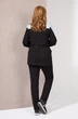 Трех-предметный спортивный костюм, состоит из спортивной кофты, брюк и майки. Спортивная кофта свободного силуэта, выполнена из трикотажа и плащевки. Горловина обработана стойкой из трикотажа и плащевки, с кулисой. Застежка на тесьму-молнию, на полочке обработана кокетка из плащевки и подрезной бочек из трикотажной ткани, также на полочке обработаны накладные карманы из трикотажа и клапан из плащевки. Рукав втачной, выполнен из трикотажа и плащевки, низ обработан притачной манжетой из трикотажной ткани, по линии талии кулиса, также обработана кокетка из плащевки. Брюки выполнены из трикотажа, прямого покроя, верхний срез обработан притачным поясом на резинке, на переднем полотнище брюк обработаны карманы. Майка выпоонена из вискозы, с V-образным вырезом горловины и нагрудными вытачками, рукав втачной, укароченный.