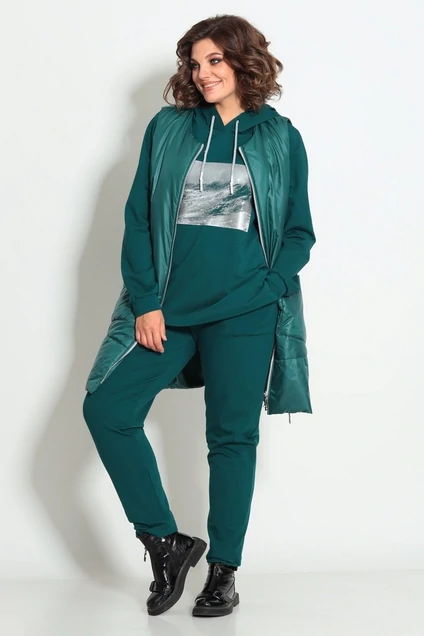 Комфортный и практичный комплект, состоящий из трех предметов (жилет, свитшот, брюки).