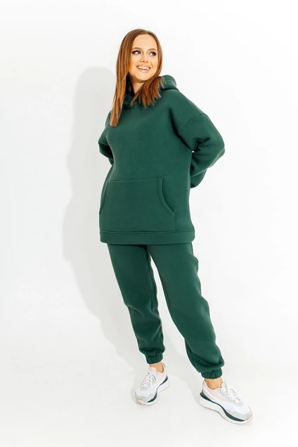Трикотажный спортивный женский костюм оверсайз из высококачественного теплого футера класса Пенье состоит из худи(рукав реглан) и брюк джоггеров с высокой посадкой . Объемный двойной капюшон отлично держит форму, функциональный карман кенгуру, манжеты рукавов из довяза(кашкорсе). Брюки с высокой посадкой на резинке без шнурка, низ на резинке с боковыми карманами. Премиальное качество.