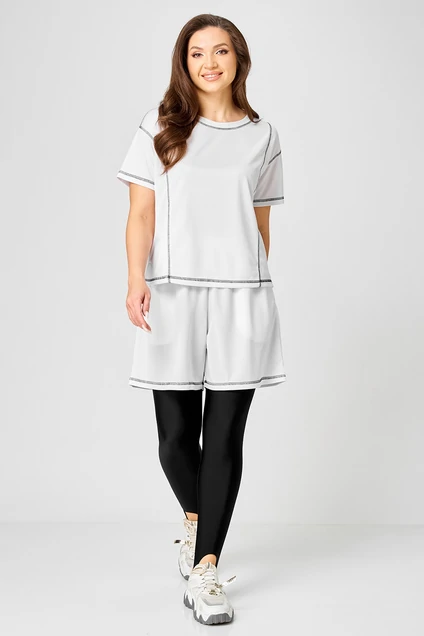 Спортивный костюм 4462 белый ZLATA предлагает идеальное сочетание стиля и комфорта для активных женщин. Коллекция бренда ZLATA воплощает в себе современные тренды и высокие стандарты удобства. Костюм включает в себя свободную футболку с короткими рукавами и классические шорты с высокой посадкой и эластичным поясом, выполненные из мягкого полиэстера с добавлением эластана. Его гладкая текстура и дышащие свойства обеспечивают комфорт в повседневной носке и во время занятий спортом, такими как фитнес и йога. Белый цвет костюма подчеркивает минималистичность и универсальность, а спортивный стиль делает его подходящим для прогулок и домашнего отдыха. Этот базовый комплект легко сочетается с лосинами и велосипедками, создавая гармоничный образ.