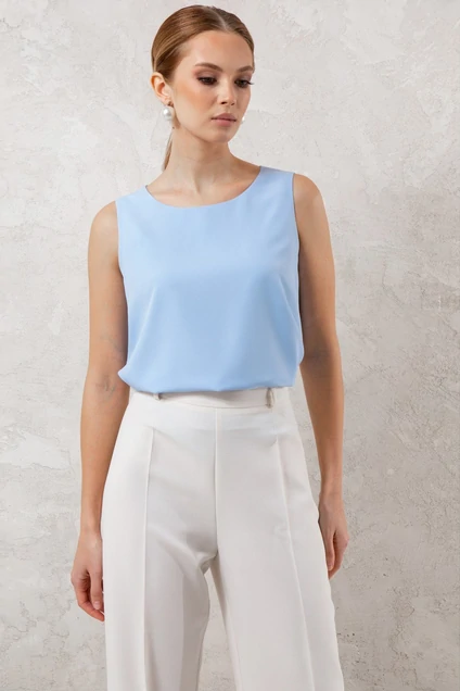 Легкий удобный топ из матового тонкого атласа. Ткань немного тянется. Длина изделия по спинке в 44-46-48 размерах 58 см, в 50-52-54 размерах 60 см.