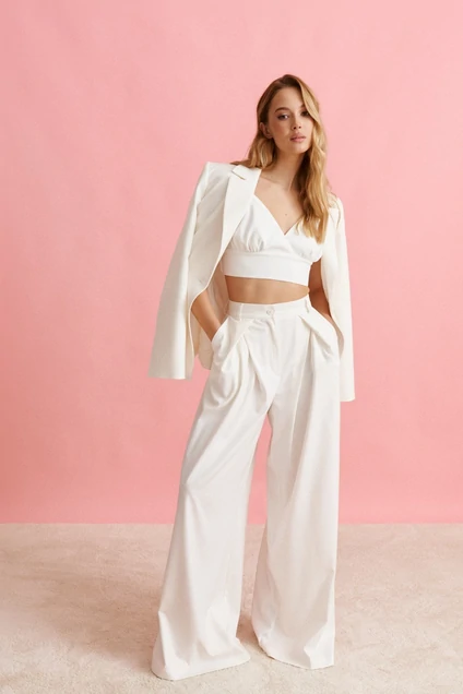 Топ на узких бретелях выполнен из полотна светлого оттенка. Миниатюрная но акцентная и смелая деталь Вашего образа.Характеристики: укороченный, фигурный вырез горловины, узкие бретели, по спинке резинка со сборкой, по переду под лифом стабильная вставка, застежки в изделии нет. Длина изделия 28 см.
