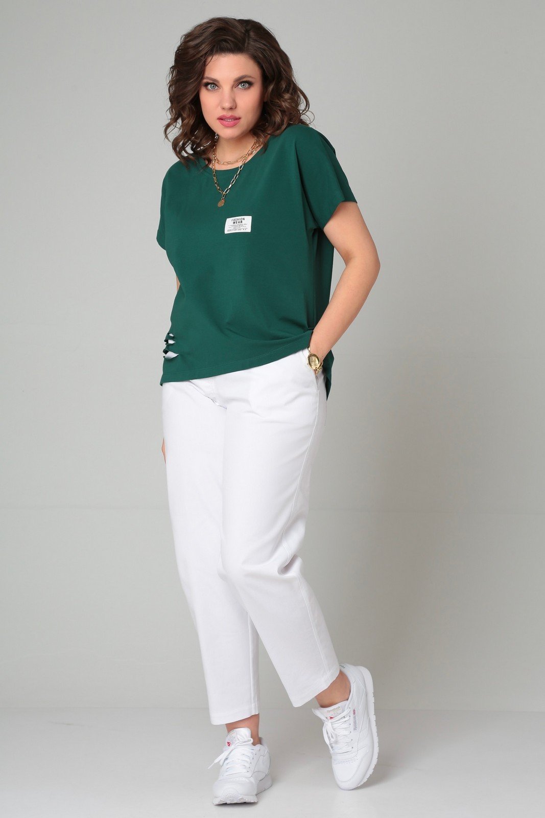 Футболка женская, выполненная в насыщенном зелёном цвете, представляет собой идеальное сочетание классического стиля с оригинальными акцентами. Эта модель имеет свободный крой с спущенной линией плеча, что добавляет современный акцент стандартному силуэту. Особенностью дизайна является удлинённая спинка, которая придает изделию дополнительную изысканность. Одежда декорирована минималистичным принтом на груди, что делает её универсальной для различных стилевых решений. Футболка доступна в различных размерах; для размеров 50-54 длина изделия по переду составляет 60 см, а для размеров 56-60 — 65 см. Такая футболка будет отличным выбором для женщин, которые ценят удобство без ущерба для стиля.