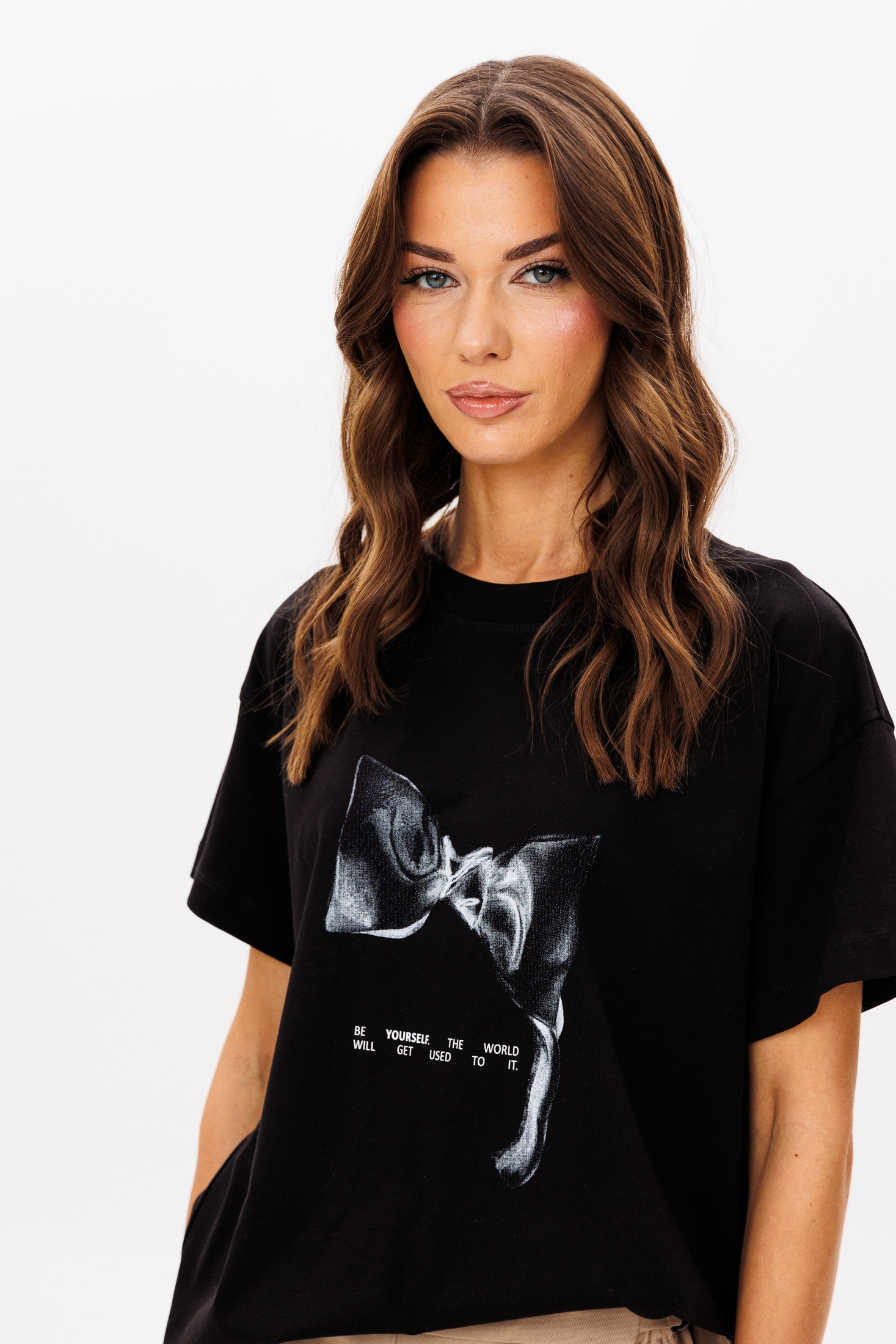 Базовые футболки - это конечно хорошо, но что делать, если хочется привнести в образ яркости, иронии и немного артистизма? Лучший способ выразить себя - выбрать вариант с классным говорящим принтом. Футболка классического кроя с втачным рукавом. Длина футболки около 60 см. Длина рукава около 15 см.