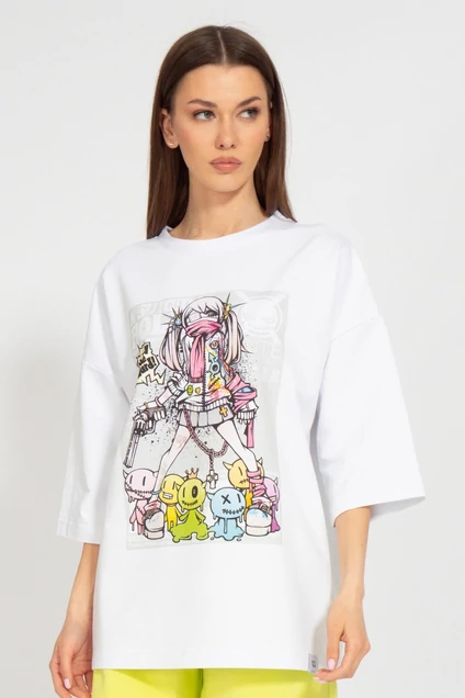 Футболка свободного кроя. Удлиненный рукав, c завышенной горловиной. Ткань кулирная гладь , качество Пенье, плотность 200 г.м2